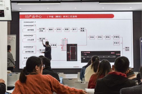 培訓會由歐蒂尼木門廠長及設計師共同為大家講解。公司招商部、訂單部、建店部、市場部、客服部以及運營部全體人員共同參加了此次培訓。培訓從最基礎的產品知識入手,內容包括新品工藝、突出賣點及接單下單技巧等專業技能。會上,講師條理清晰,講解生動,從產品的研發過程到功能、特點都做了充分的介紹。
