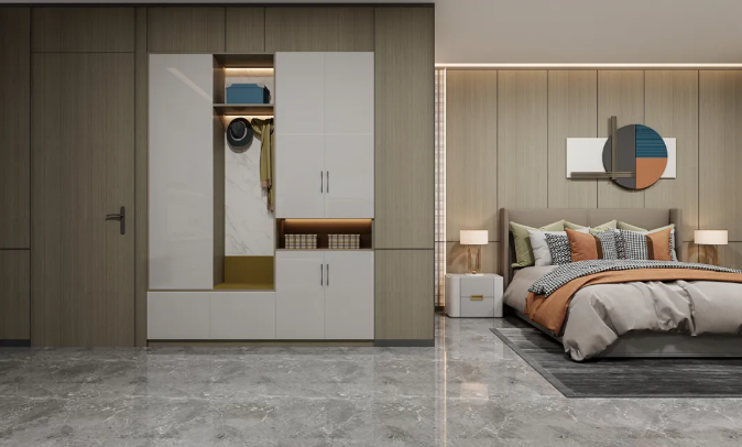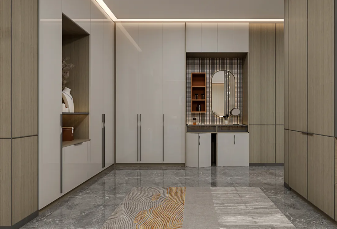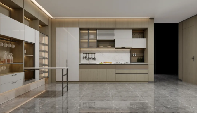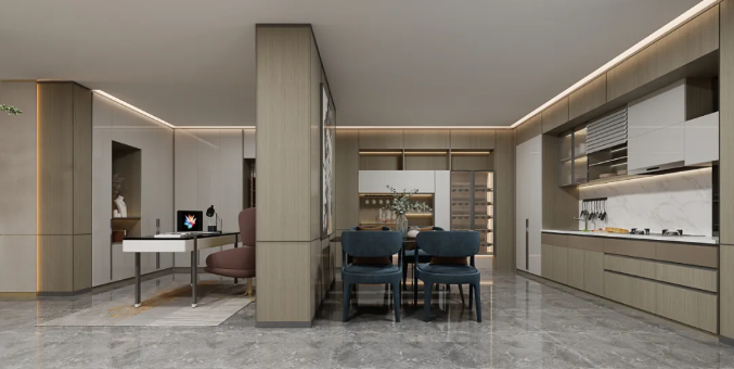 材質的自由混搭,豎紋玻璃門板的巧妙融合
