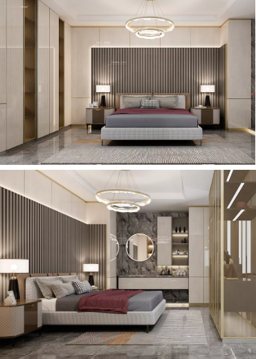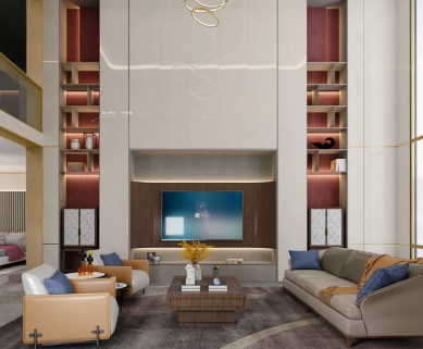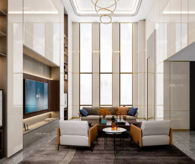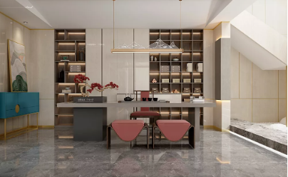 輕奢新中式風格在空間中,還是希望保留新中式高雅的韻味。它們通過硬裝對空間的節奏,對材質的應用搭配來營造氛圍,會運用到東方美學的“留白”等表現手法。