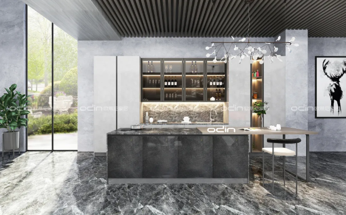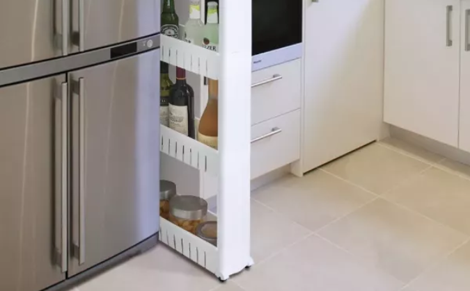 間隙用帶輪儲物架,這種儲物架通常造型獨特,能夠塞入櫥柜與操作臺之間的空隙中,最大限度地利用廚房空間的同時,也能讓雜亂小物隱藏起來,使廚房看起來更加整潔。
