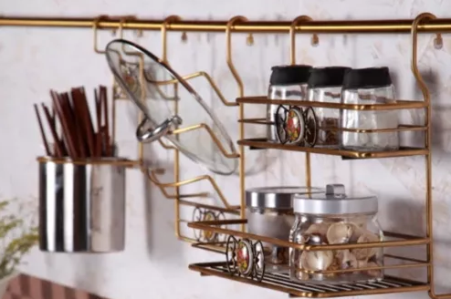 灶臺這里里溫度比較高,一般不要存放食品,容易變質。鍋蓋單獨存放,可以把更多的鍋摞在一起,增加收納容量。鍋蓋可以放在分層架上,比較省地方。