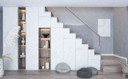 除此之外,還可以將樓梯區(qū)域設計成儲物間、小書房、休閑區(qū)等功能區(qū),打造出更為豐富多變的空間層次,也可以大大增加實用性,讓單調(diào)的空間變得與眾不同。