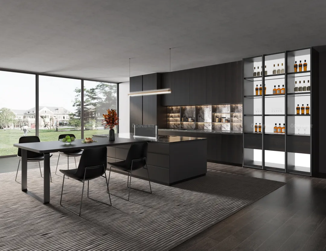 意大利設(shè)計(jì),向來以精致與奢華聞名。意式輕奢廚房,將經(jīng)典與現(xiàn)代巧妙融合,選用高級(jí)材質(zhì)如大理石、金屬與木材,營造出低調(diào)奢華的氛圍。巧妙的燈光設(shè)計(jì)與島臺(tái)布局,讓每一次烹飪都成為一場藝術(shù)表演。