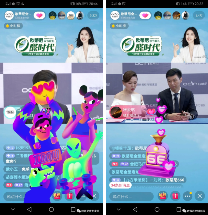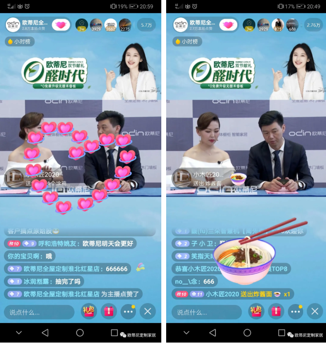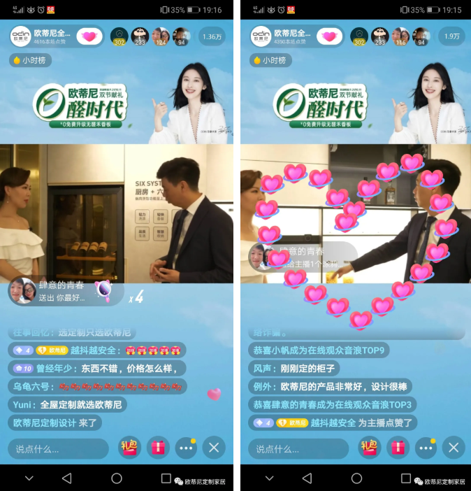 星光熠熠,巔峰對話!作為活動的另一重磅環節,歐蒂尼集團董事長直面大家疑問,向大家傳遞了品牌背后創辦的初心、并就企業發展歷程、產品深度解析、五金選用考究以及歐蒂尼禾香板與傳統板材之間的區別和好處等方面做了詳細分享。歐蒂尼家居對于設計與品質的執念,無時無刻都在感染著直播間的觀眾們。