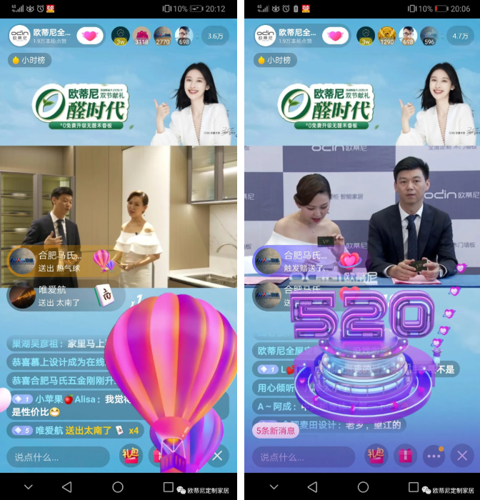 2小時的不間斷直播,瀏覽人數達5.7萬人次,點贊量達2.7 萬,達成總訂單1294單。此次直播是歐蒂尼集團首次以直播的形式展示歐蒂尼家居品牌。直播分享會在合肥總部進行,全國線上線下門店共同聯動,以多種形式享受此次優惠。