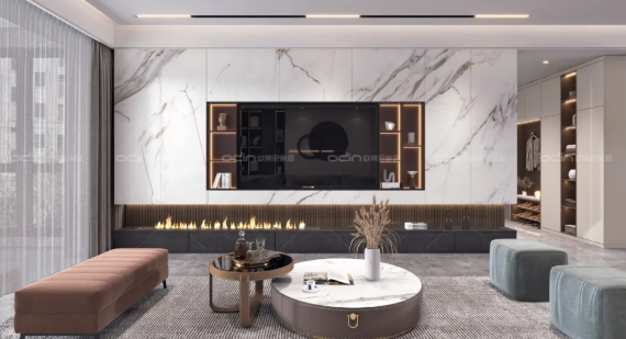 客廳,作為家庭的休閑娛樂活動中心。高顏值的裝修能夠直觀地展現出主人的品味檔次。與普通瓷磚相比,巖板背景墻更具美觀和實用性。巖板可以做到“無縫裝飾”的效果。它規格大、質地輕的特點,相對于石材更適合做背景墻裝飾,更為穩固安全。