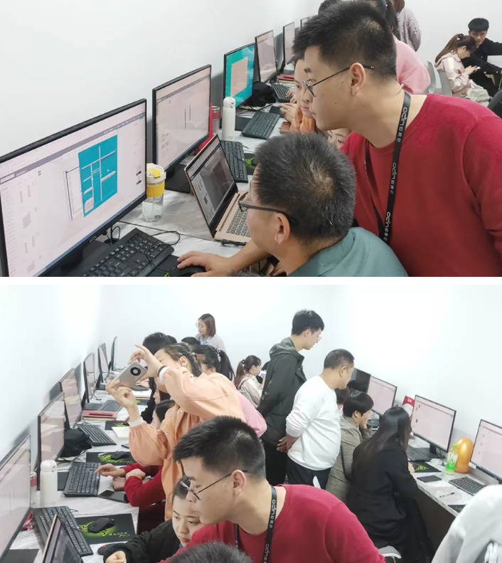 與此同時,商學(xué)院導(dǎo)師對學(xué)員進(jìn)行軟件系統(tǒng)的培訓(xùn)與實操。從搭建技巧、結(jié)構(gòu)改造、空間布置,到渲染燈光技巧講解,全程干貨滿滿。其目的是為了讓大家學(xué)會用設(shè)計技術(shù)制勝終端,提升市場占有率。學(xué)員們都聚精會神仔細(xì)學(xué)習(xí)交流。