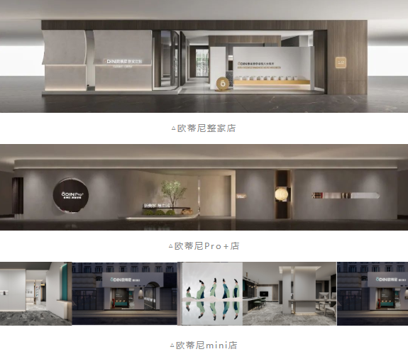 2022歐蒂尼以一種新的形式,新的標準,全面提升品牌形象面向市場。從品牌定位、產品設計、視覺設計等方面進行全新升級設計,推出整家店、Pro+店、mini店三種店態模式。