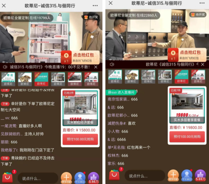 為了讓廣大消費者更好更深地了解品牌、產品,歐蒂尼用直播的形式,帶廣大消費者深入了解生產工藝,從原料到開料再到封邊以及包裝,詳細闡述每一個環節,更直面用戶疑問,全面解答強化消費者信心。