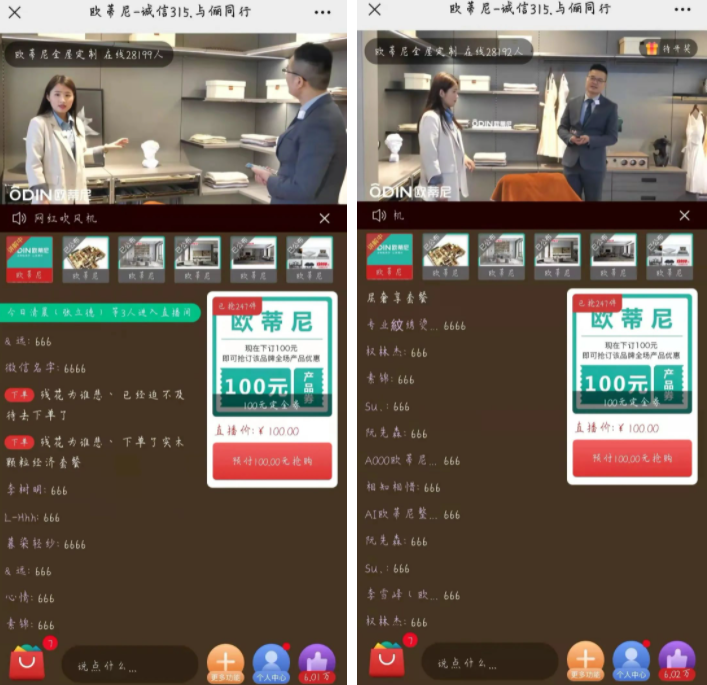 直播期間,大家跟隨鏡頭參觀了歐蒂尼總部新品展廳,探索了整個展廳的設計亮點、產品風格以及產品背后的工藝設計和理念。滿滿的干貨內容和專業講解,場景化使用的體驗,讓消費者所見即可得。線上粉絲直呼給力,紛紛點贊。