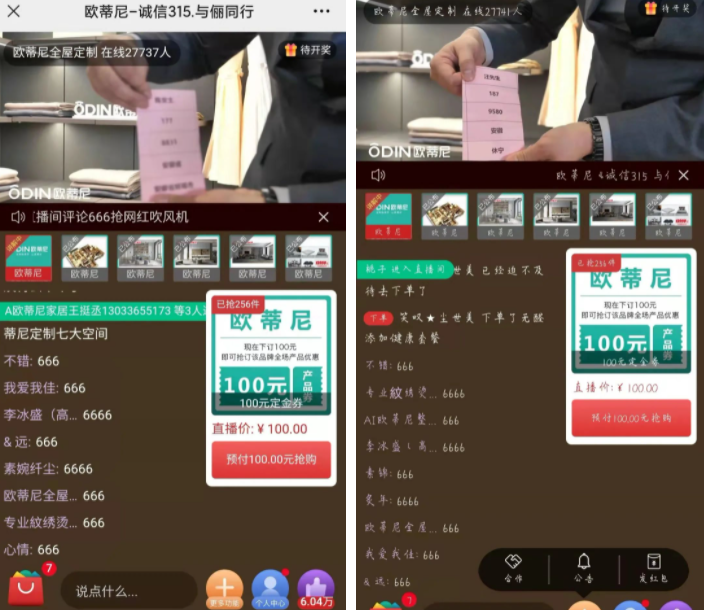 直播期間驚喜不斷放送、多重福利持續加攻!在直播過程中,眾多產品售賣火爆。動感單車、電視機、按摩椅等豪禮不斷派送,高潮迭起。歐蒂尼硬核寵粉,直播間福利“爆棚”,一系列限時福利政策、超值抽獎禮品,瞬間讓直播間氣氛高漲,掀起一股搶購熱潮,吸引粉絲不斷刷屏互動。