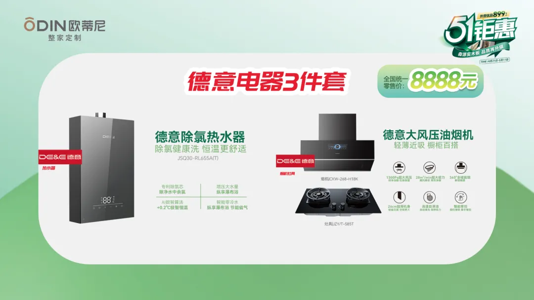 本次活動的核心套餐“19800元定全屋”堪稱行業性價比標桿。僅需19800元,即可享受20㎡全屋柜體隨心搭配,涵蓋衣柜、鞋柜、書柜、陽臺柜等全屋空間,支持個性化設計,滿足收納與美學雙重需求。除外,送 3 米地柜 + 3 米吊柜 + 3 米石英石臺面,采用環保板材與耐用石材,打造經久耐用的烹飪空間,廚房基礎配置一步到位。還有德意三件套電器,抽油煙機、燃氣灶、熱水器三大廚房核心電器直接贈送,真正實現“拎包入住”式省心體驗。