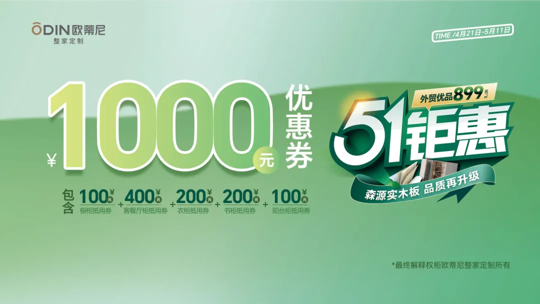 除了線下門店的鉅惠,歐蒂尼官方直播間還將開啟“51狂歡購”專場,100 元抵 1000 元抵扣券瘋狂派送,搶到就是賺到!我們最大限度讓利終端消費者,用品質產品、感恩鉅惠行動為消費者的權益保駕護航!