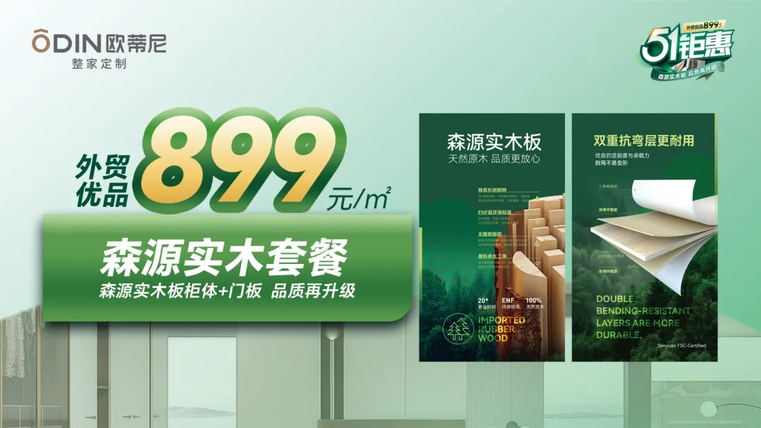 除此之外,歐蒂尼還針對不同消費群體推出多款爆款套餐,覆蓋實木、烤漆、成品家具等全品類。我們推出899元/㎡森源實木板套餐,板材采用2025年全新升級的ENF級杉木芯,通過雙重環保認證,母嬰家庭可安心使用。指接拼裝工藝+雙層抗彎層設計,承重性提升30%,抗變形能力遠超普通板材,兼具環保與耐用性。