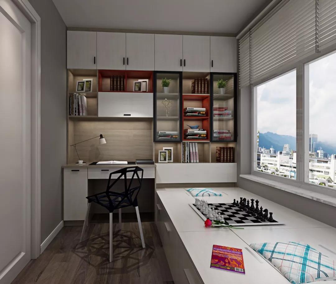 小房間可以因地制宜地做一些多功能設(shè)計(jì)榻榻米,或多種組合形式的柜體,實(shí)現(xiàn)書(shū)臥一體的空間。兒童房則可以用組合柜體形式,打造小孩休息、學(xué)習(xí)、娛樂(lè)一體化的多功能空間。