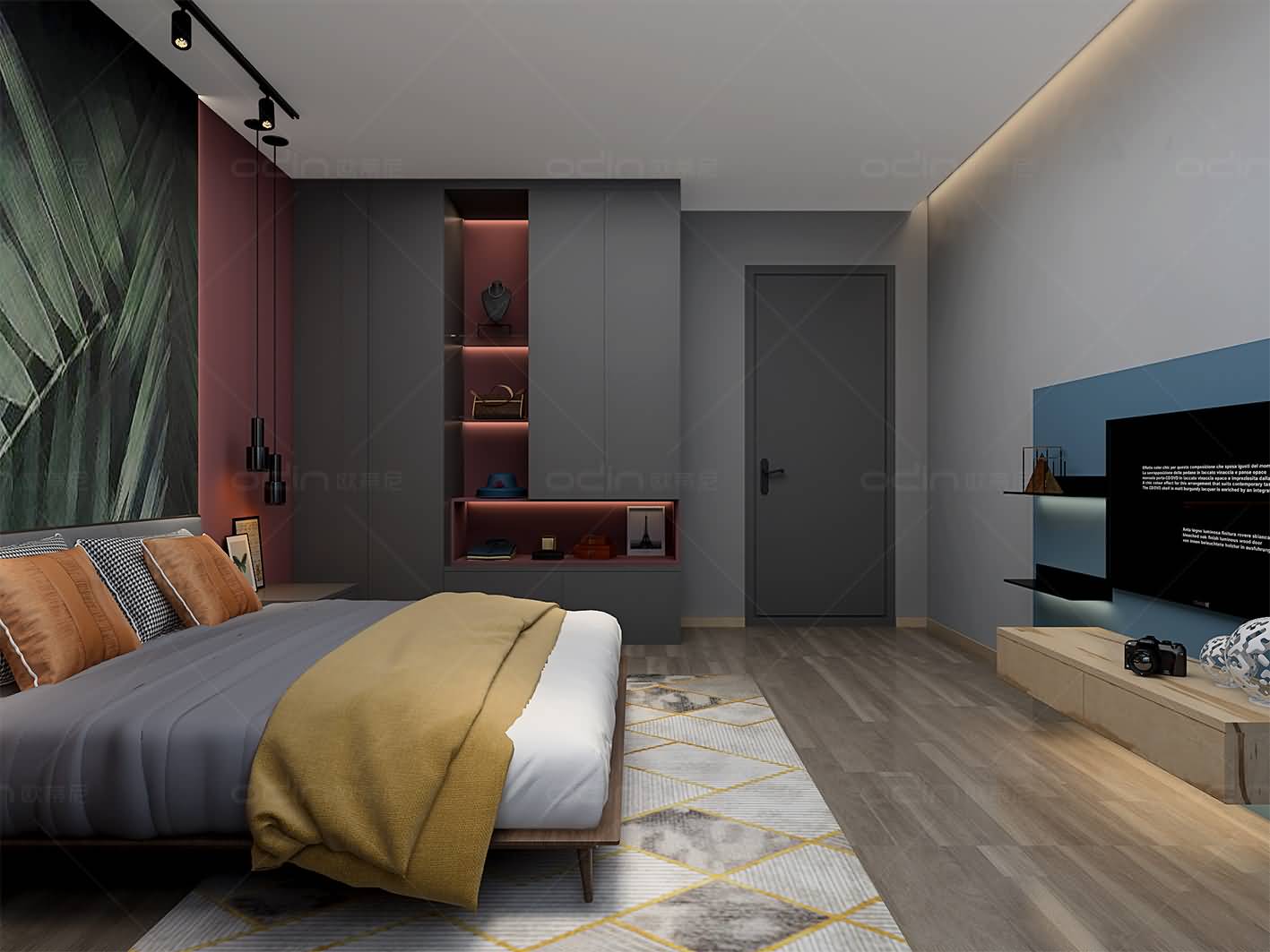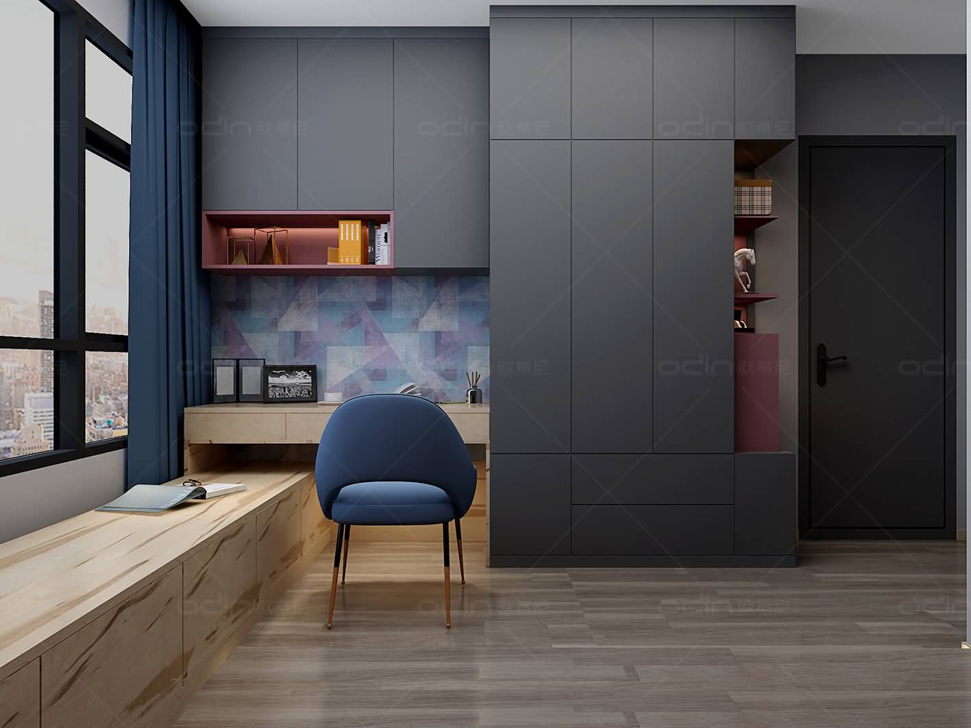 開放式布局讓行走動線更為連貫,而明亮的光線為空間注入了一絲體貼的溫度,莫蘭迪具有質(zhì)感的單色表現(xiàn),營造出自然而具有現(xiàn)代感的家居氛圍。大面積的單色和木紋色的應(yīng)用,詮釋出極致生活美學(xué)的追求,同時也讓生活氣息和藝術(shù)氣質(zhì)相融合,打造出寧靜舒適的臥室環(huán)境。