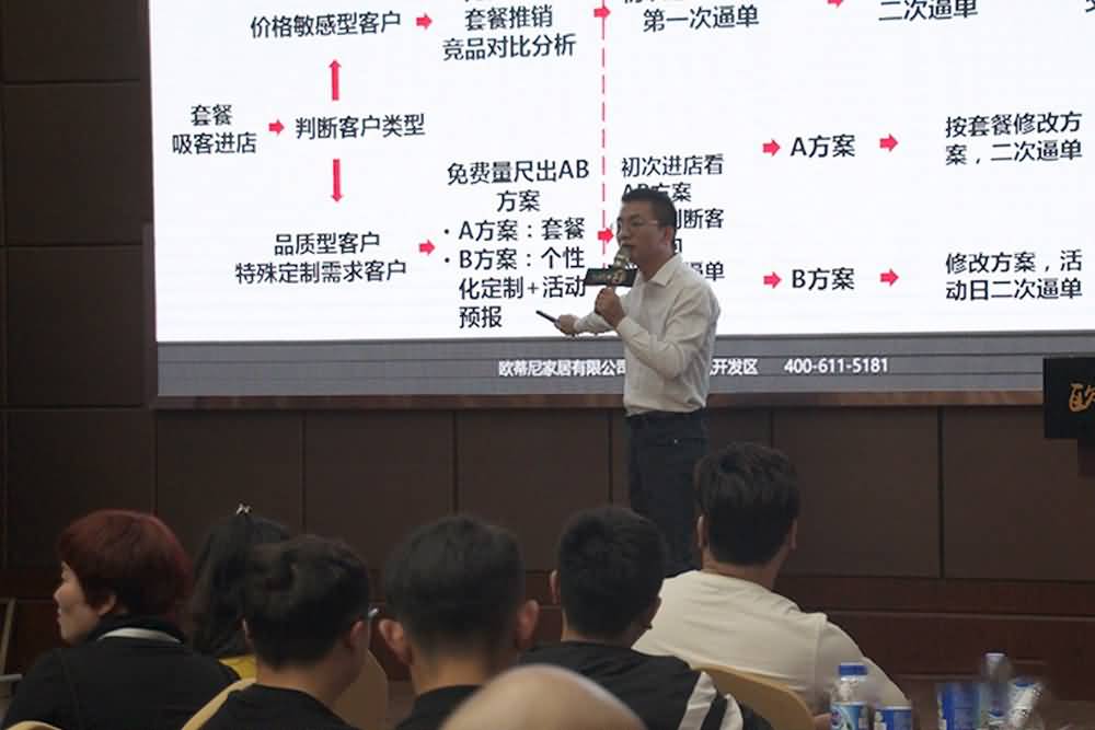 本次特訓(xùn)營吸引了歐蒂尼全國經(jīng)銷商和他們的店面設(shè)計(jì)師、銷售人員、售后服務(wù)人員。他們之間進(jìn)行了溝通,加深了對歐蒂尼品牌文化的了解,學(xué)習(xí)了歐蒂尼產(chǎn)品的生產(chǎn)工藝、設(shè)計(jì)理念,演練了店面銷售技巧,介紹了當(dāng)前定制家具市場現(xiàn)狀,培訓(xùn)了歐蒂尼售后服務(wù)流程,他們還參觀了歐蒂尼生產(chǎn)車間和最新產(chǎn)品展廳。