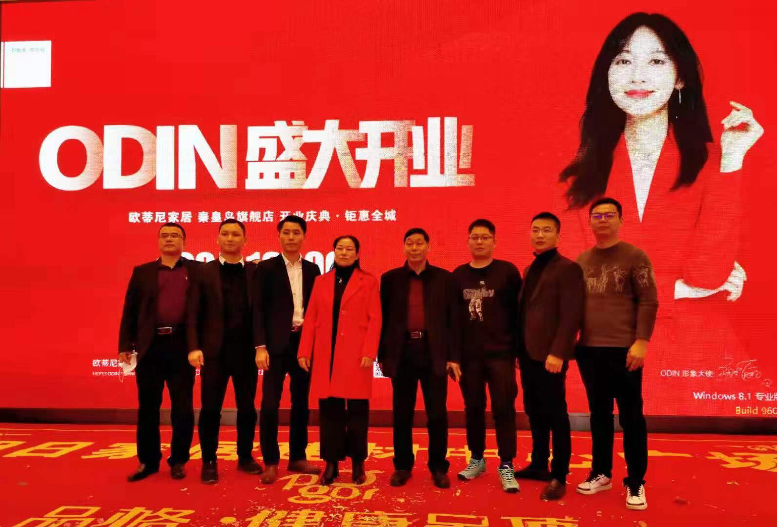 (左一)歐蒂尼家居有限公司華北大區總監周永樂先生;(左二)旭日家居建材中心廣場黨委書記兼工會主席趙艷女士;(左三)秦皇島市松禾健商貿有限責任公司董事長、歐蒂尼全屋定制秦皇島旗艦店總經理宋春蘭女士;(右二)秦皇島市鐵飯碗火鍋店董事長劉金明先生;(右一)秦皇島市安徽商會會長汪長春先生